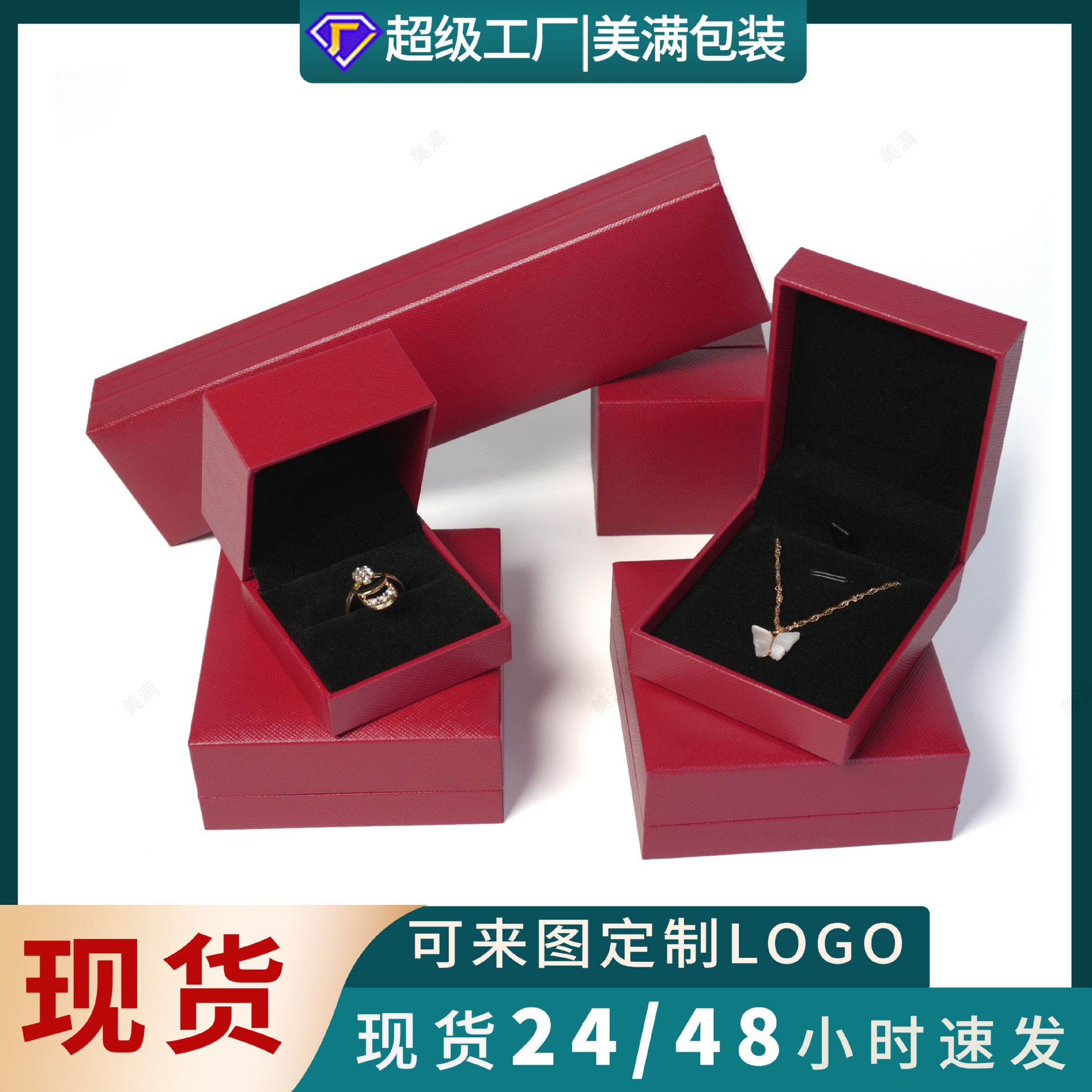 Ready-Made Leatherette Paper Gold Jewelry Box Packaging Box High-End Grid Pattern Ring Box Bracelet Necklace Box