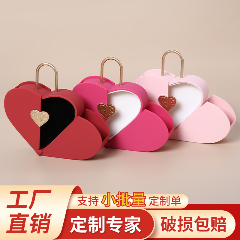 Hand-Held Advanced Valentine's Day Gift Box Heart-Shaped Jewelry Box Jewelry Gift Box Necklace Lock Heart Creative Storage Box