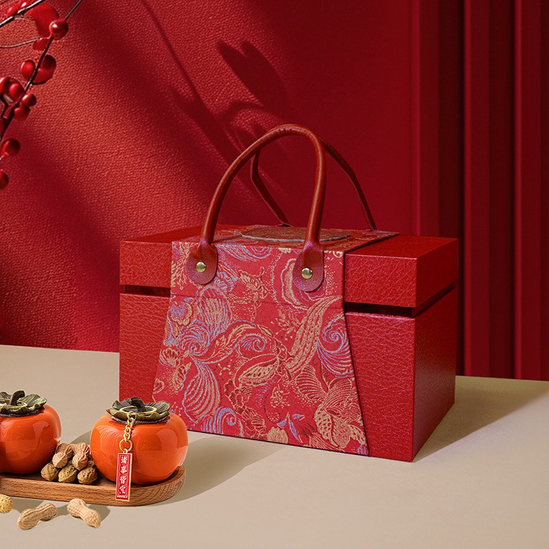 Chinese Style Gift Box Leather Suitcase Wedding Birthday Banquet Housewarming Gift Box Large High-End Gift Empty Box
