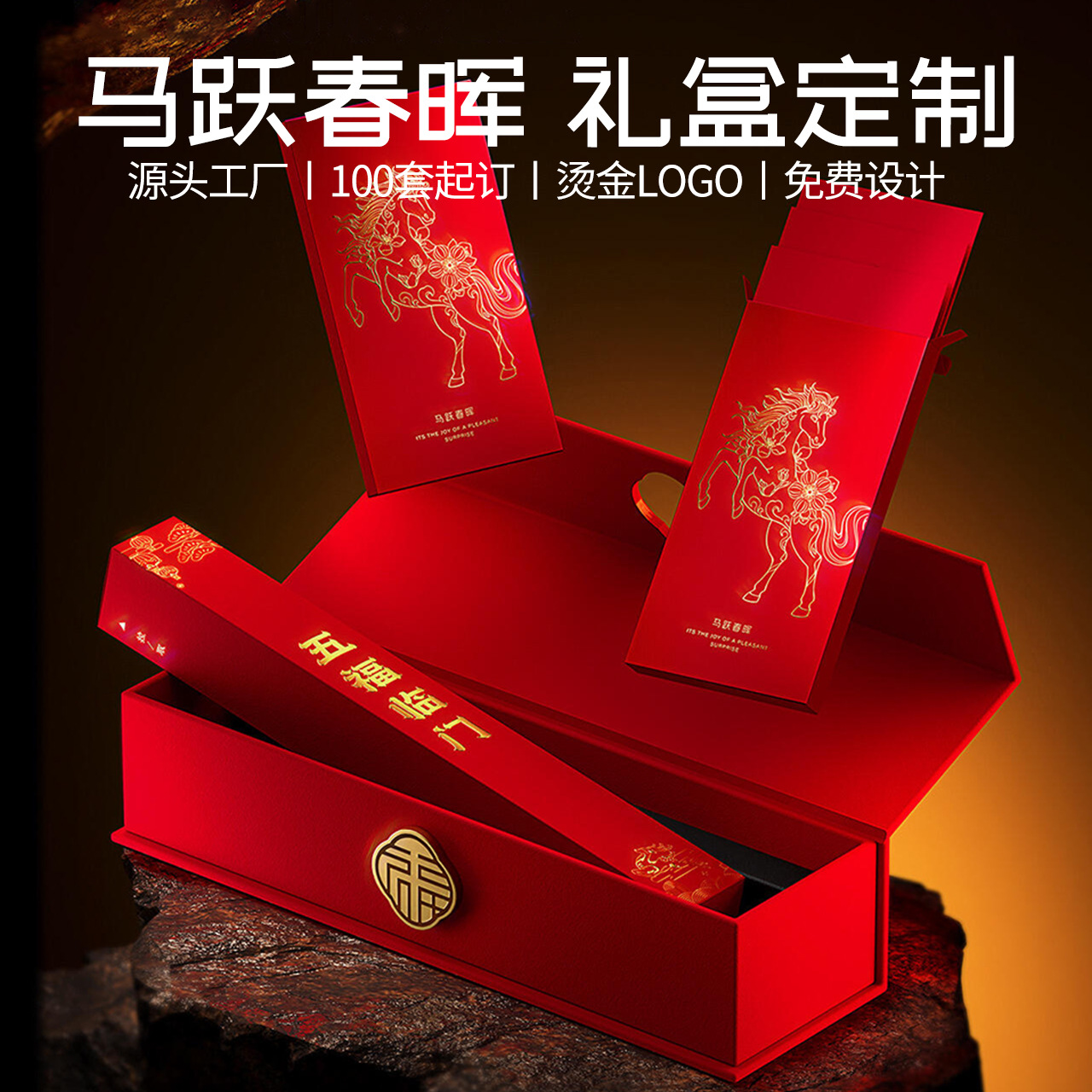2026 Year of the Horse New Year Gift Box Custom Logo Packaging Empty Box Hot Stamping High-End Original Red Envelope Desk Calendar Set