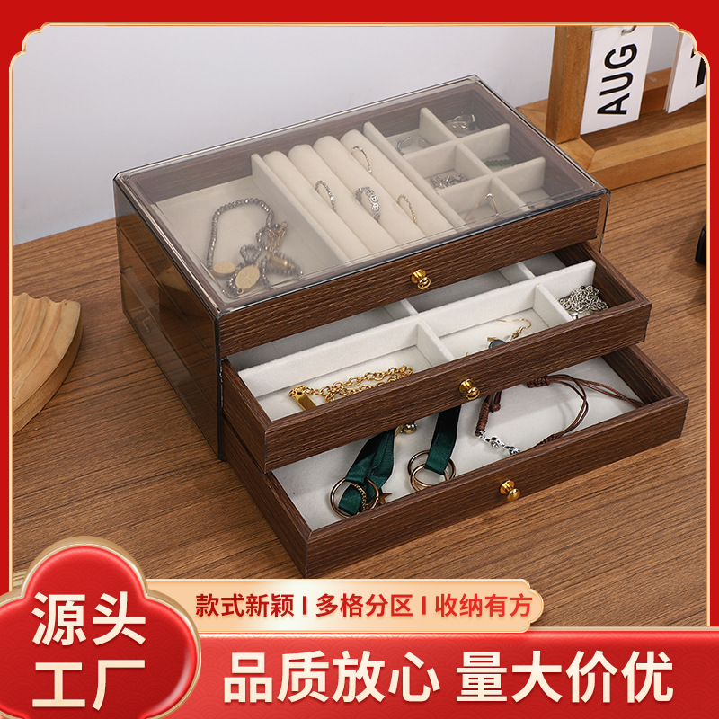 Retro Walnut Jewelry Box, High-End Earrings, Bracelets, Desktop Storage Box, Light Luxury Earrings, Rings, Jewelry Boxes