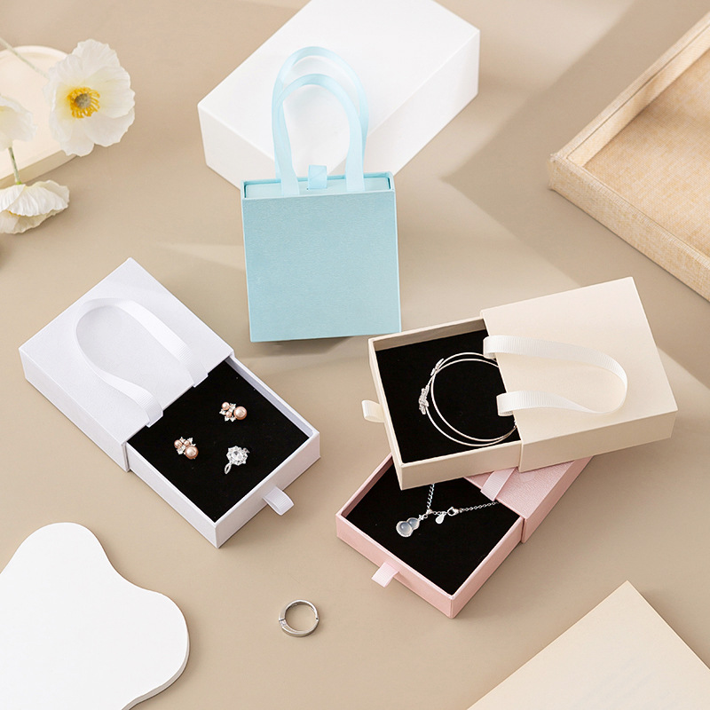 High-End Jewelry Box with Logo Drawer Box, Ring Earrings, Necklace Jewelry Packaging Box, Satchel Packaging Gift Box