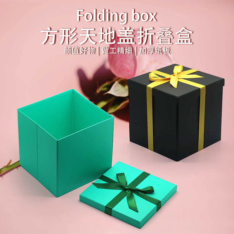 High-End Portable Square Foldableing Gift Box with Lid, Foldableing Box Storage Box, Black Green Pure Color Foldableing Box