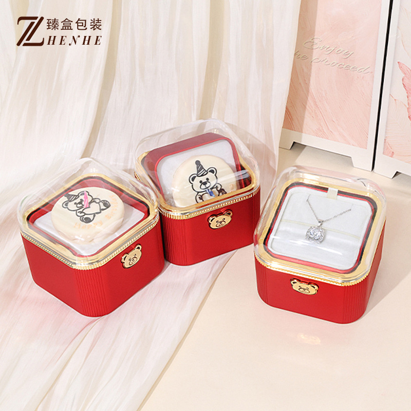 Exquisite Bear-Shaped Cake Gift Jewelry Box, High-End Luxury Automatic Flipping Surprise Proposal Ring Box