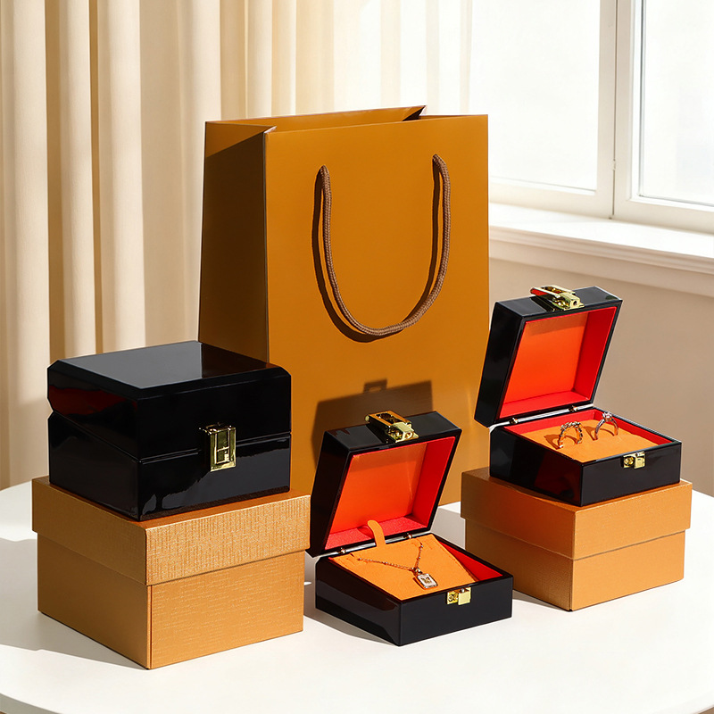 High-End Gold Jewelry Piano Paint Jewelry Box Ring Bracelet Pendant Three Gold Box Packaging Jewelry Gift Box