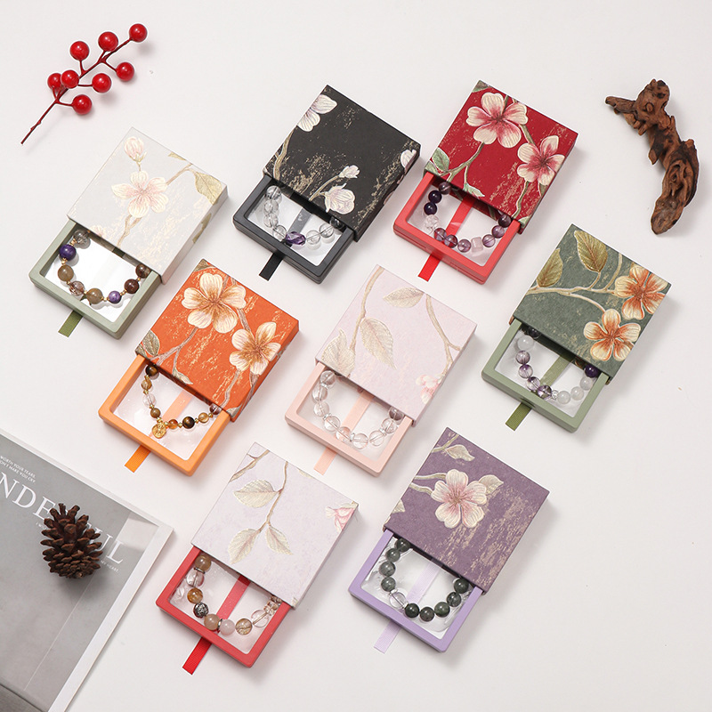 Spot Chinese Style Flower Bracelet Packaging Box Crystal Bracelet Packaging Box High-End Retro Jewelry Box Pe Film Box
