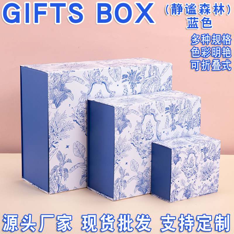 Chinese Style Blue Gift Box Friends Birthday Gift Box Advanced Sense Gift Box Empty Box Folding Box