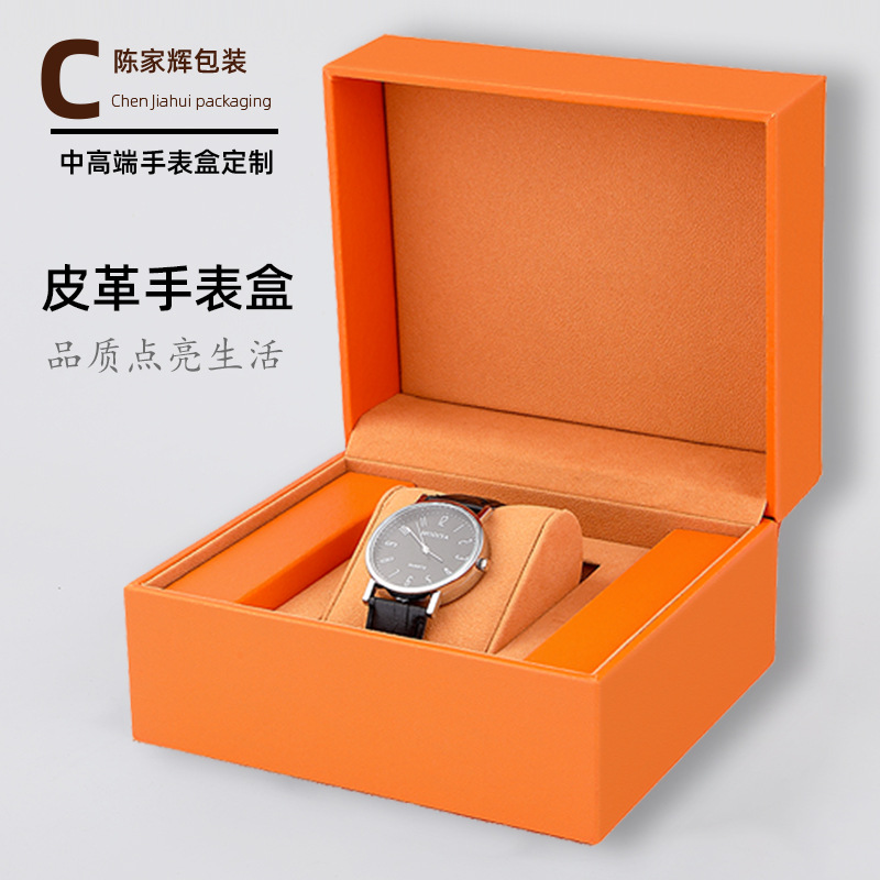 Orange High-End Leather Watch Box, Light Luxury and High-End Watch Gift Box, Universal Wedding Gift Packaging Box, Customizable