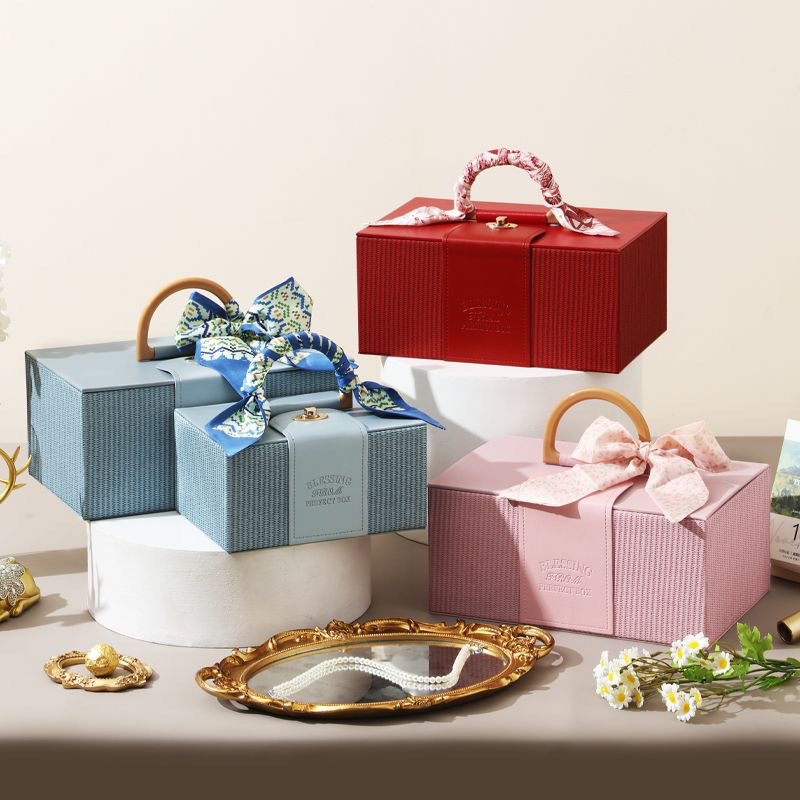 Leather Light Luxury Portable Cosmetic Case, High-End Groomsmen and Bridesmaids Gift Box, Birthday Gift Box, Wedding Return Gift Empty Box