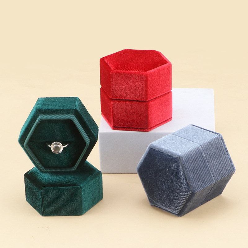 High-grade Creative Hexagon Jewelry Box Flannel Cover High-grade Sense Ring Necklace Box Proposal Jewelry Packaging Box