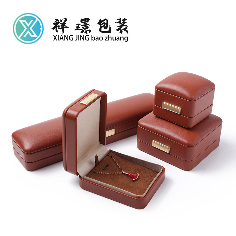 High-End Pu Leather Jewelry Storage Box Jewelry Ring Necklace Box Exquisite Gemstone Packaging Box Metal Label Jewelry Box