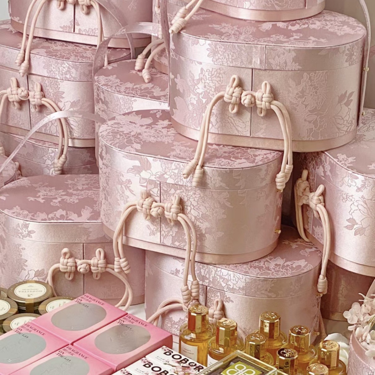 New Chinese Brocade Wedding Souvenir Candy Box Gift Oval Chinese Style High-End Flower Basket Ready-Made Gift Box
