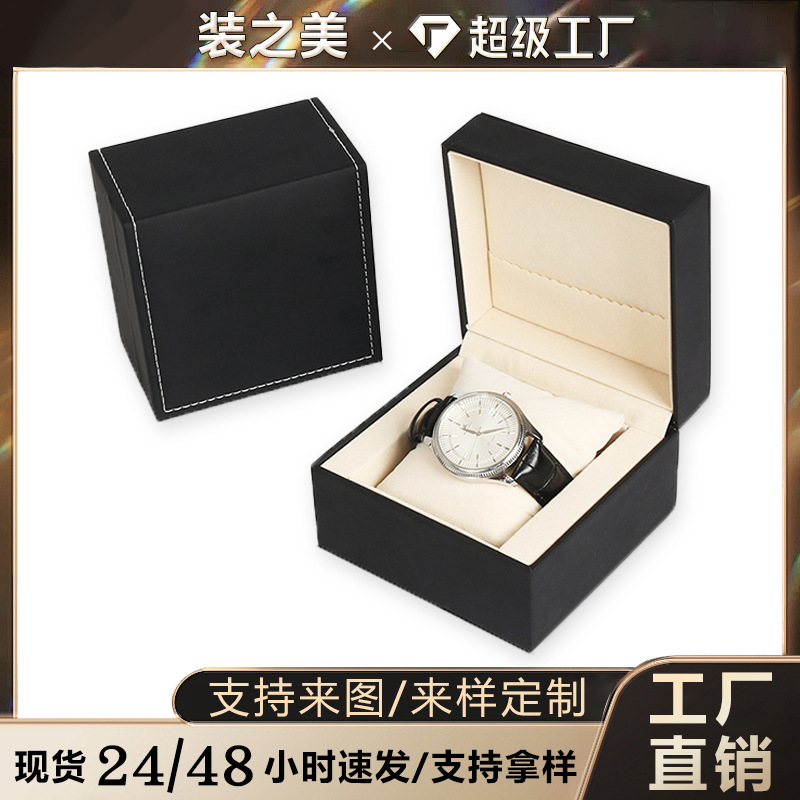 Advanced sense black watch box PU watch storage box bracelet jewelry box jewelry box men's watch box wholesale