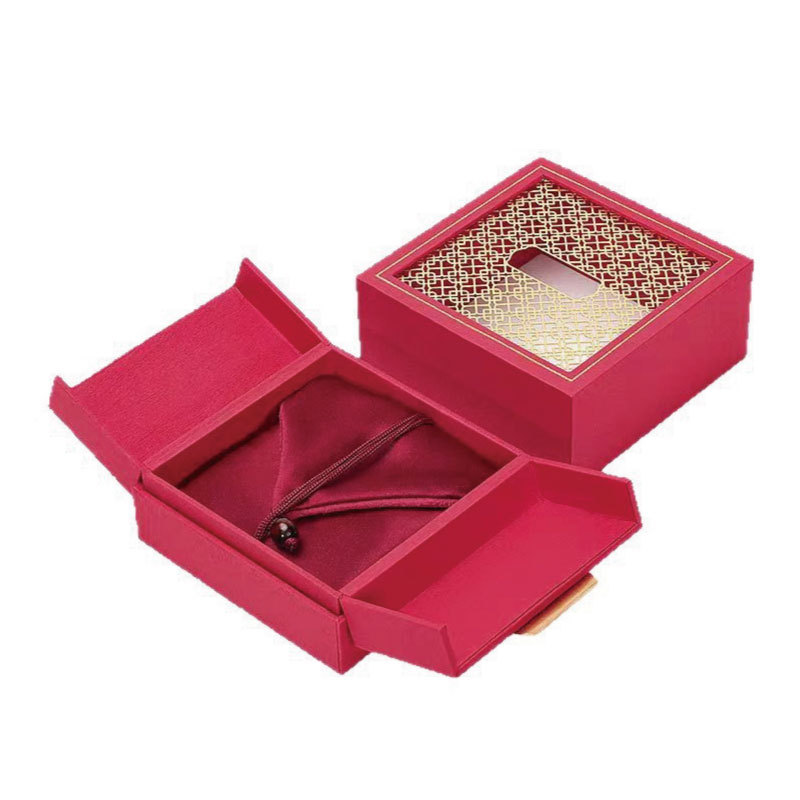 Original High-End Hot Stamping Drawer Jewelry Box Transparent Anti-Oxidation Red Pe Film Jewelry Box Brooch Packaging Box