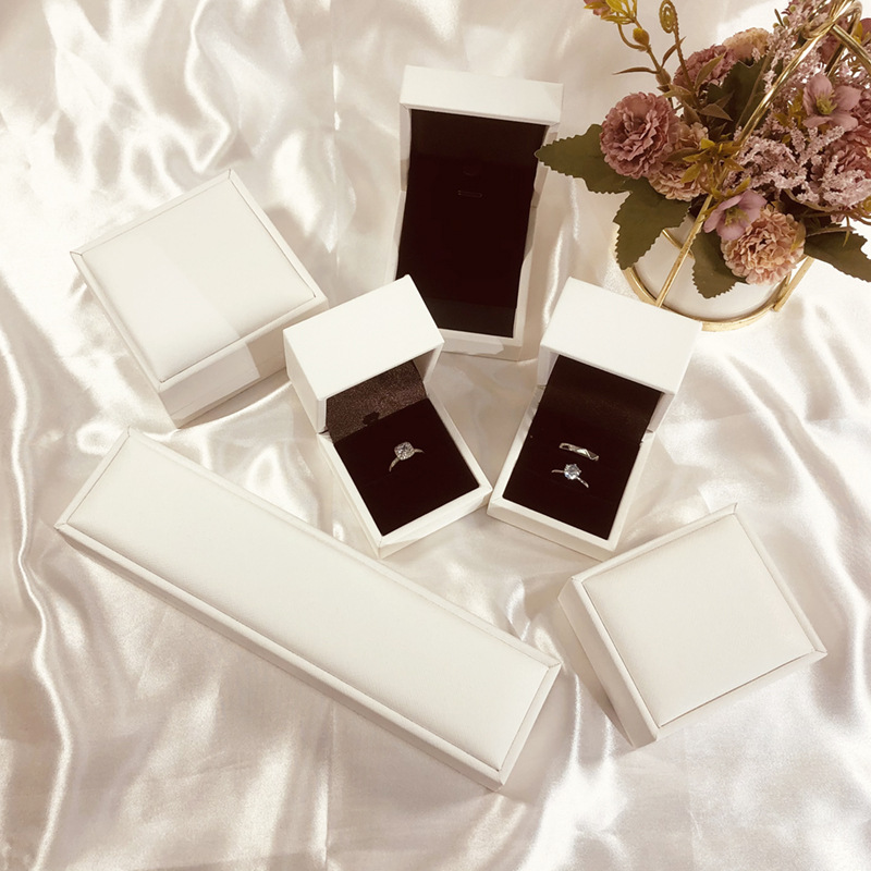 White PU Leather Wedding Ceremony Proposal Ring Box Pair Ring Box High Sense Necklace Box Bracelet Box Jewelry Packaging Box