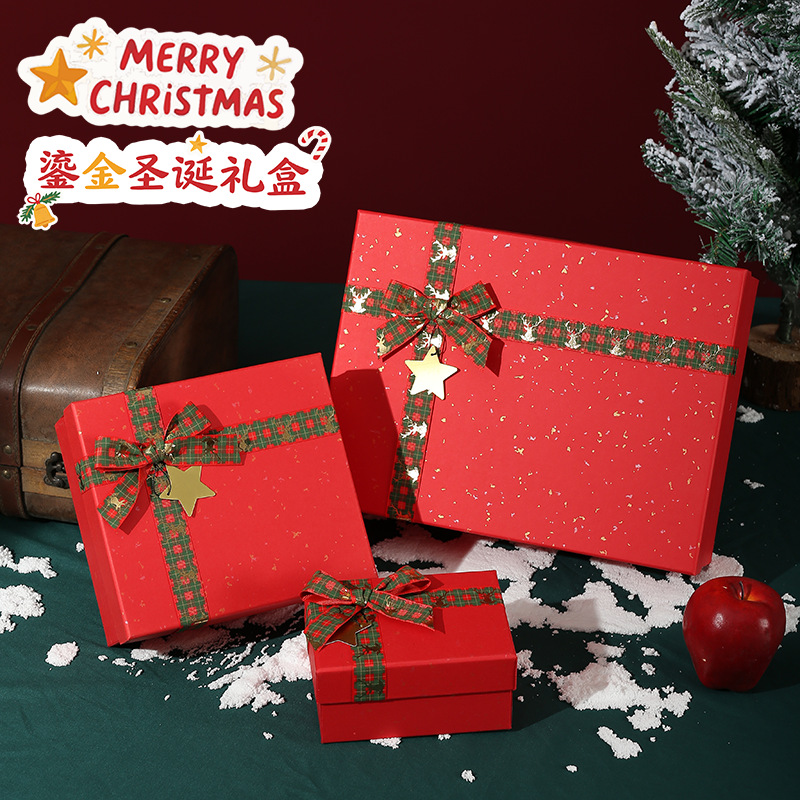 Christmas Gold Gift Box High-End Empty Box Large Rectangular Red Apple Gift Box Christmas Eve