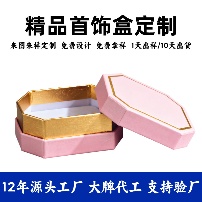 Jewelry Box Customized Octagonal Lid Packaging Box Pink Hot Stamping Earrings Jewelry Box Necklace Gift Box High-End