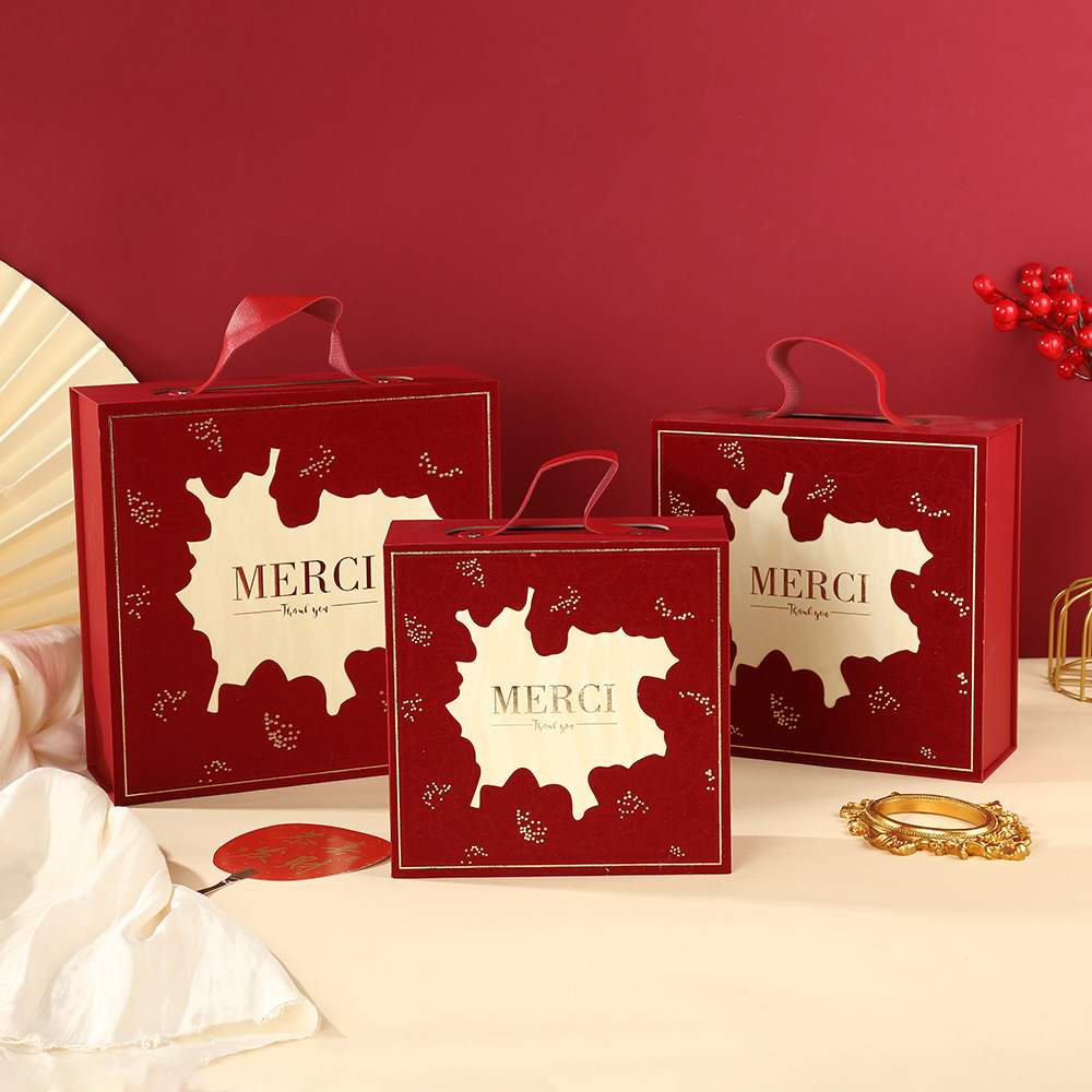 Red Hot Stamping Satchel Gift Box, Fashionable and High-End Gift Packaging Box, Wedding Candy Box, Holiday Souvenir Empty Box