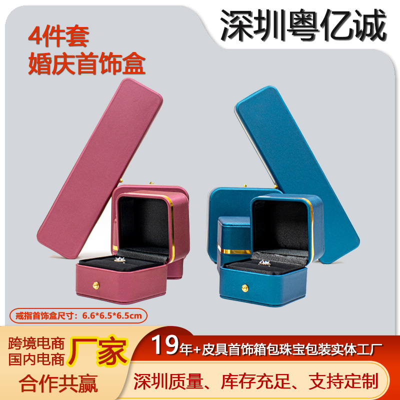 Factory Customized High-End Rounded Gold Pu Jewelry Box Gold Jewelry Storage Box Ring Necklace Bracelet Engagement