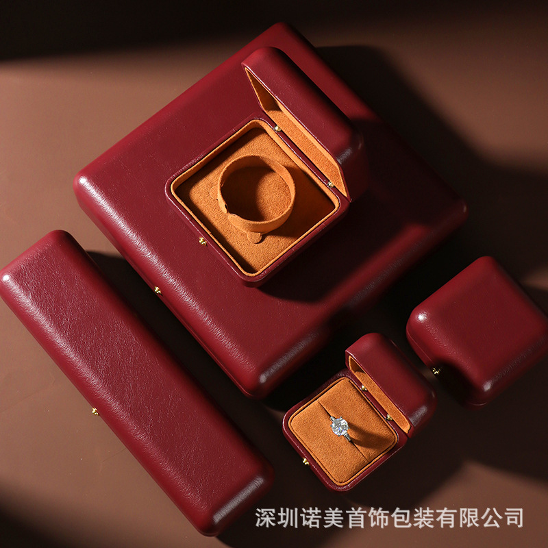 Luxurious Big-Name Jewelry Box, Burgundy Diamond and Colored Gemstone Ring and Necklace Box, High-End European-Style Leather Jewelry Box, Customized