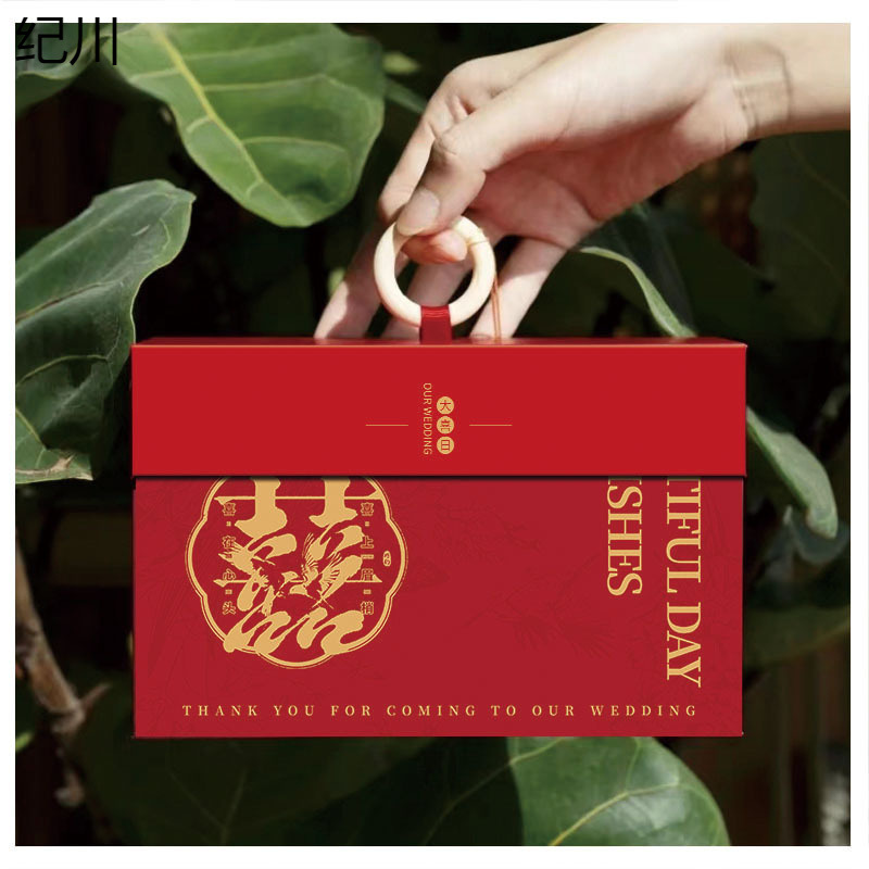 Chinese Wedding Accompaniment Gift Box, Hand-Held Luxury Wedding Candy Box, Foldable-Free Sugar Box, Candy Packaging Box, Hot Stamping