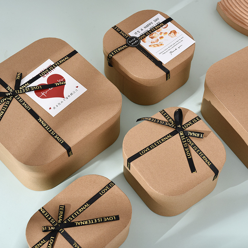 High-End Round Edge Heaven and Earth Cover Baking Cake Packaging Gift Box Bow Birthday Gift Box Companion Gift Box