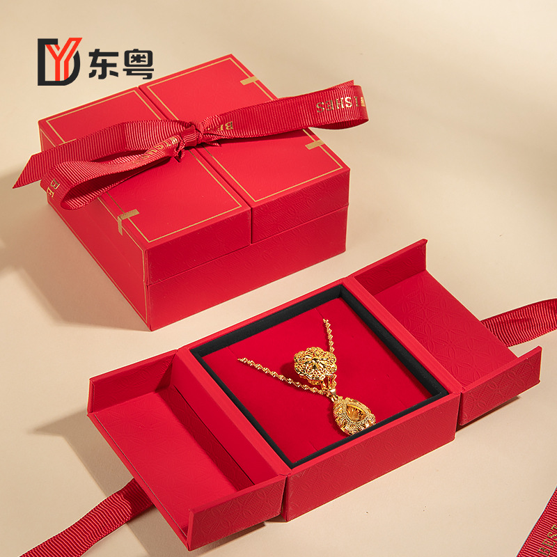 Chinese Flip Bow Jewelry Box Chinese Red Jewelry Storage Box High-end Holiday Gift Box Proposal Box