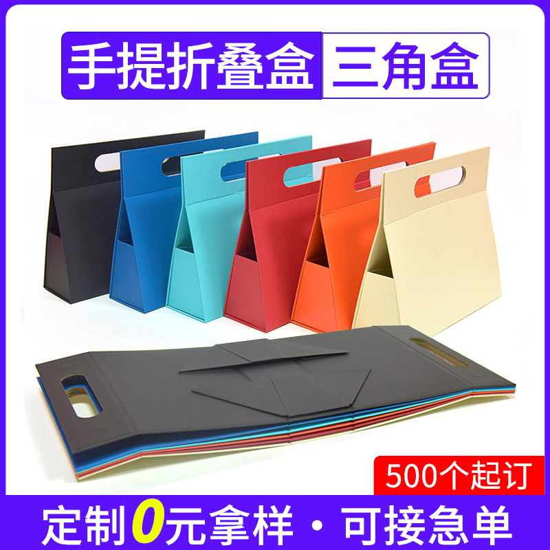 One-Piece Foldableing Triangular Satchel Packaging Gift Box Cross-Border High-End Pure Color Printing Magnetic Box Gift Box Customization