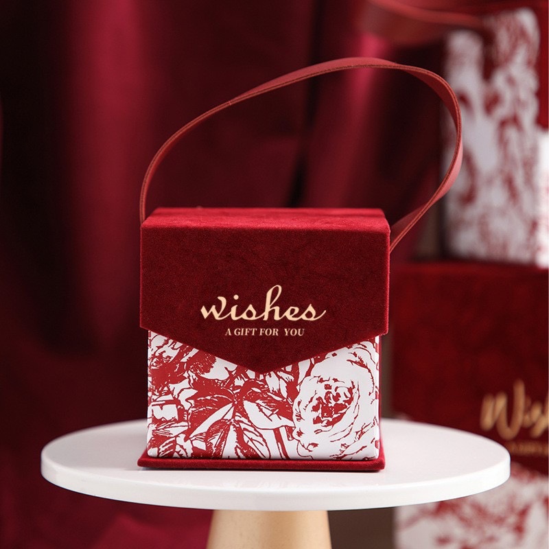 Rose Pattern Velvet Candy Box Advanced Accompanying Gift Box Wedding Bridesmaid Candy Box Portable Birthday Gift Packaging Box