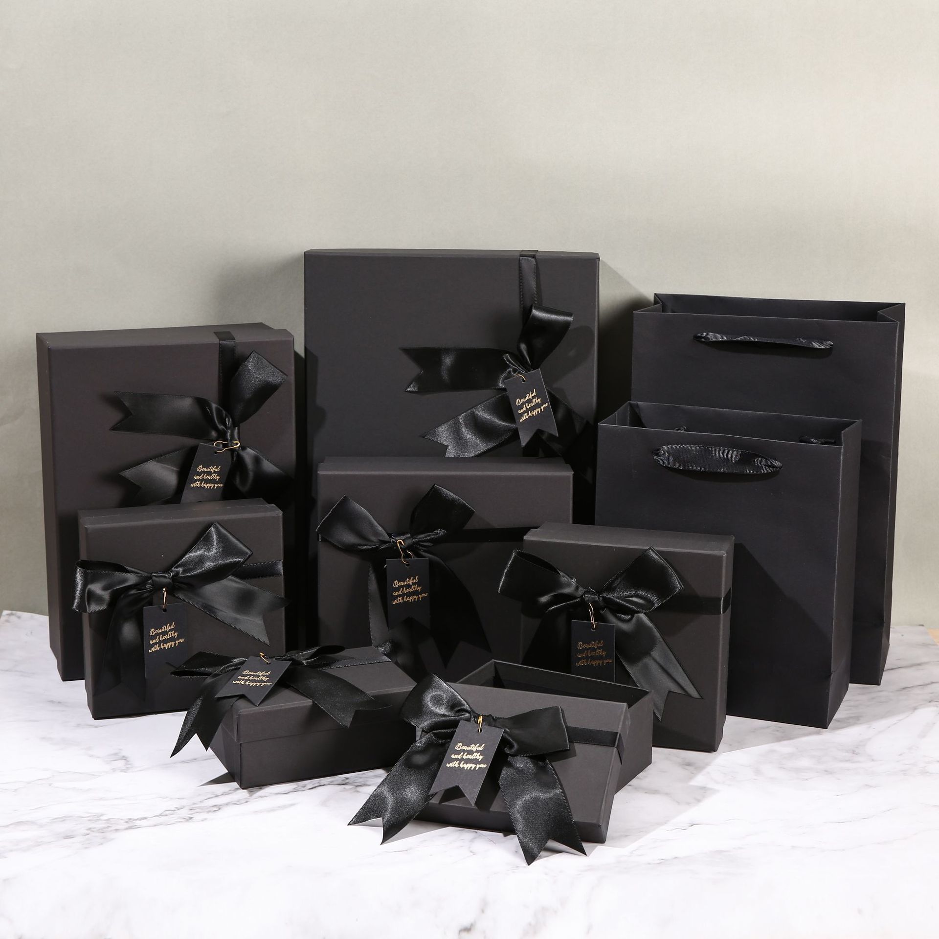 Black Heaven and Earth Cover Gift Box Bow Companion Gift Box Rectangular Large Gift Box High-End Ready Stock Wholesale