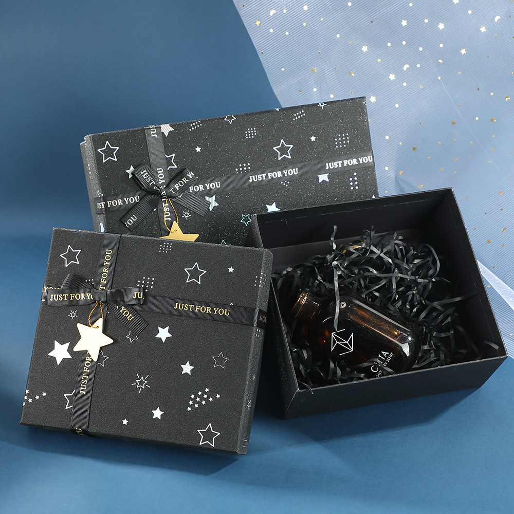 New Black High-End Gift Box with Sky and Earth Cover, Creative Starry Sky Printed Gift Box, Large Gift Packaging Box Wholesale