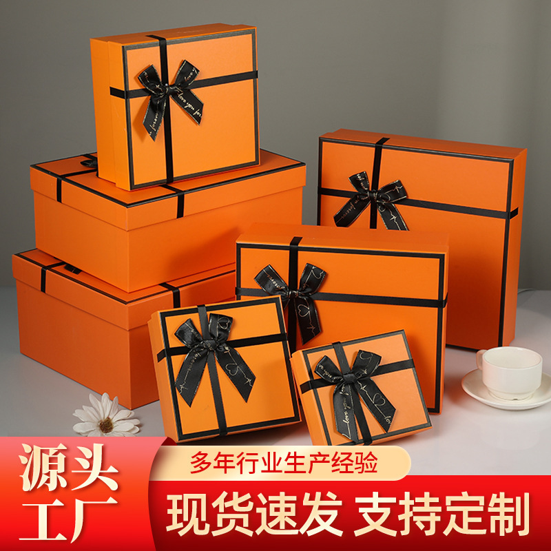 Orange Bow High-End Gift Box Heaven and Earth Cover Gift Box Valentine's Day Gift Box Packaging Box Customization