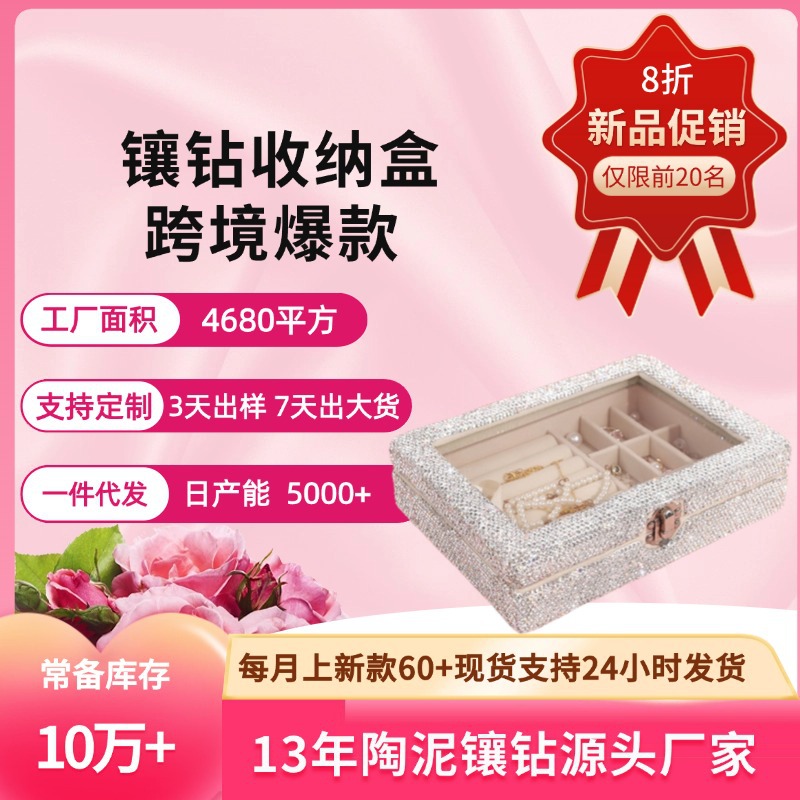 Cross-Border Rhinestone-Encrusted Light Luxury High-End Velvet Jewelry Box Customized Hair Accessories Bracelet Necklace Earrings Ring Storage Box