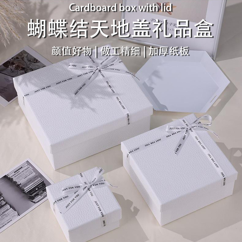 Bow Solid Color Large Gift Box Gift Box Birthday Gift Box Empty Box High-End Gift Packaging Heaven and Earth Cover Box