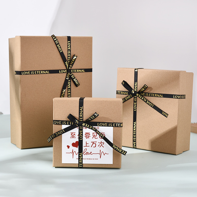 High-End Bow Heaven and Earth Cover Baking Packaging Gift Box Kraft Paper Birthday Gift Box Wedding Accompaniment Gift Box