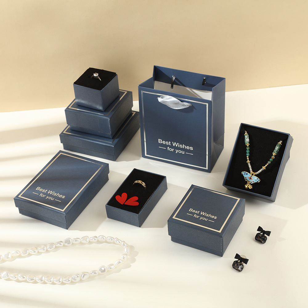 Dark Blue High-End Hot Stamping Jewelry Box Necklace Ring High-End Packaging Box Accessible Luxury Fashion Jewelry Gift Box