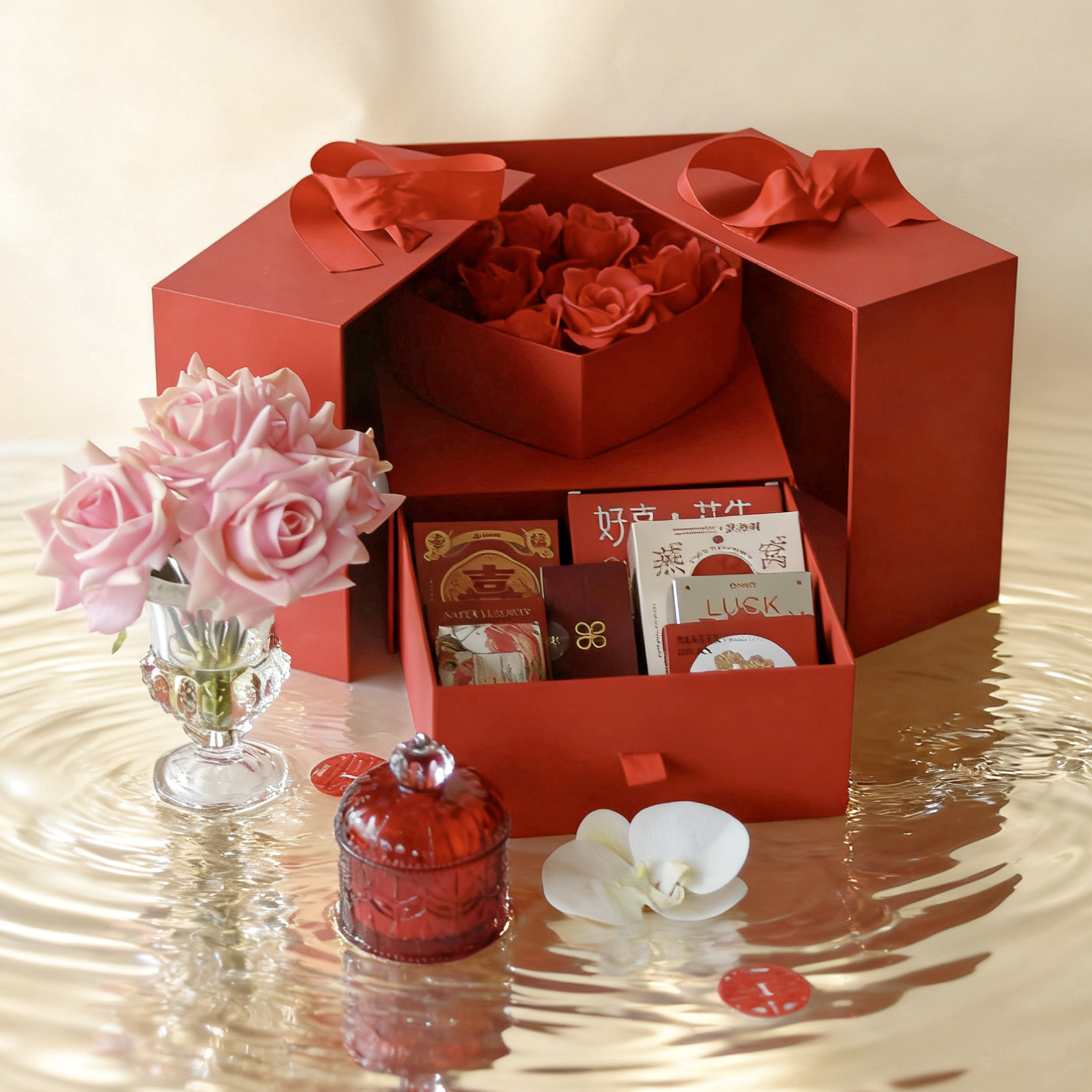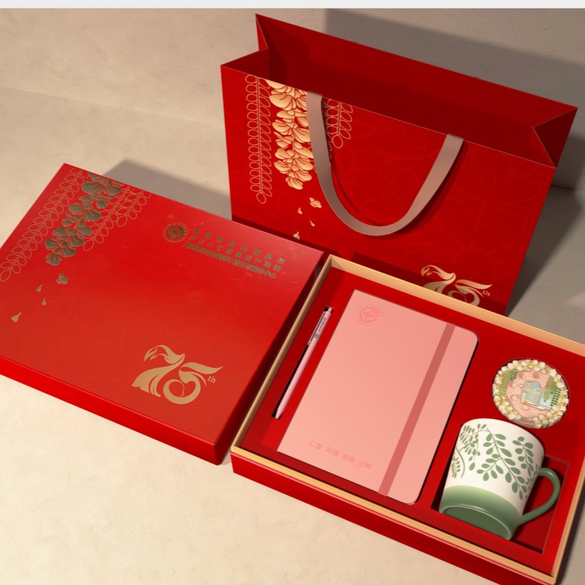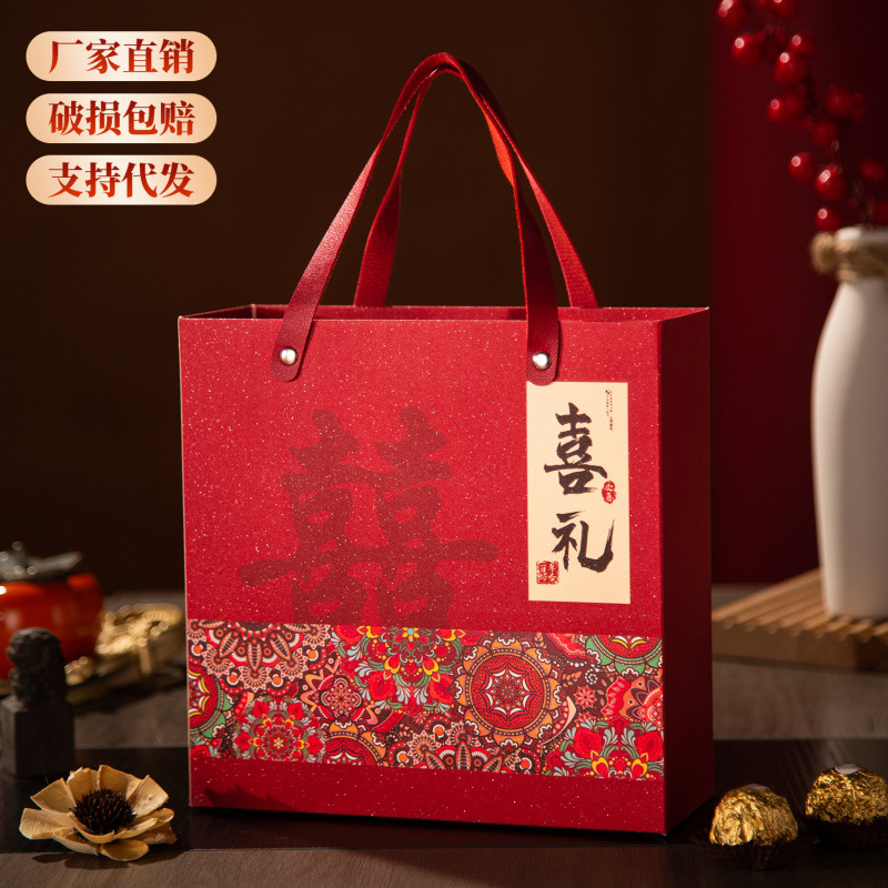 Red Festive Business Gift Box, High-End Gift Paper Bag, Cultural and Creative Commemorative Gift Bag, Gift Box, Portable Gift Bag