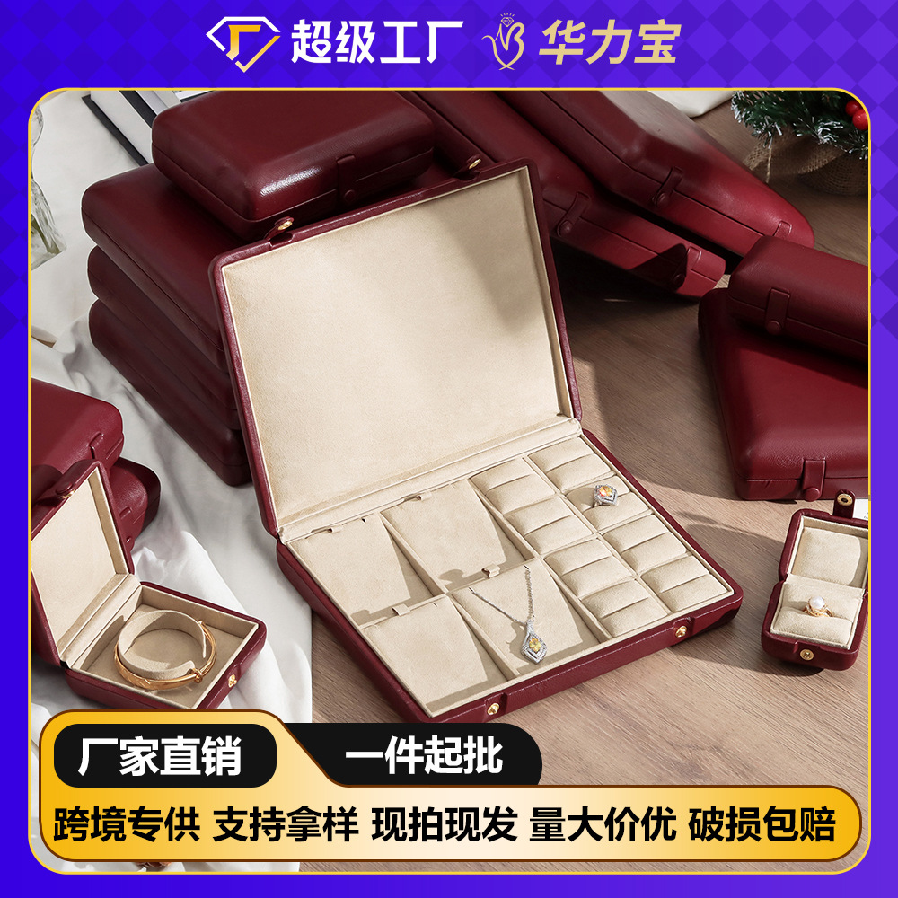 New leather portable jewelry box high-end sense double-layer simple earrings earrings ring jewelry box storage box wholesale