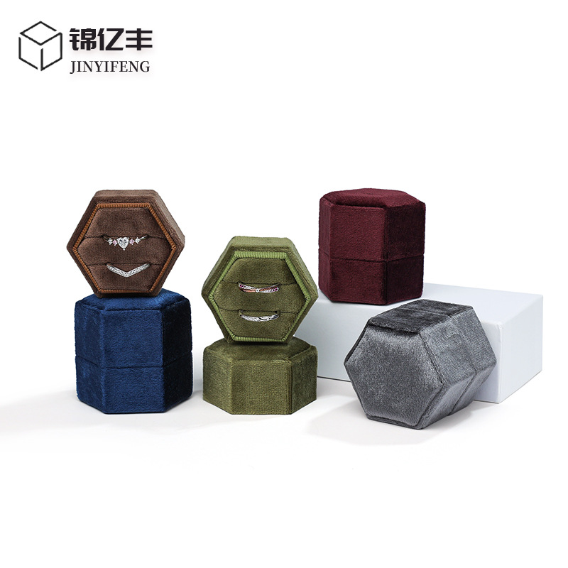Cross-Border Jewelrybox Flannel Hexagonal Jewelry Box High-End Ring Jewelry Box Jewelry Packaging Box