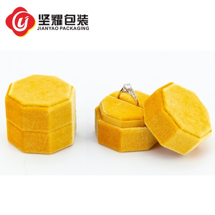 Manufacturer Customized Octagonal Yellow Velvet High-End Jewelry Ring Gift Packaging Plastic Box High-End Seven Colors Optional