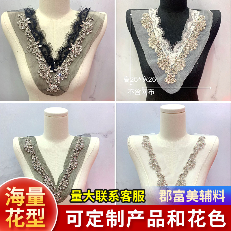 Spot Handmade diy Fake Collar Patch with Diamond Beading V Neckline Lace Embroider Collar Hand-sewn Diamond Lace Accessories