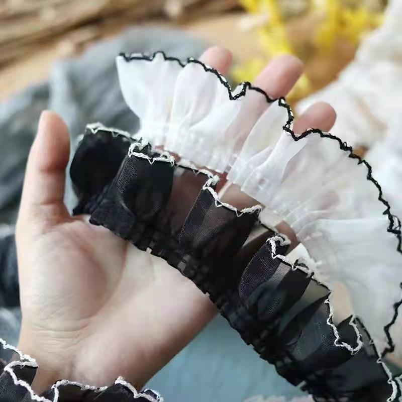 2.5cm Single-Sided Polyester Chiffon Crinkle Lace Trim for DIY Crafts, Doll Accessories, Hats, and Chanel-Style Embellishments