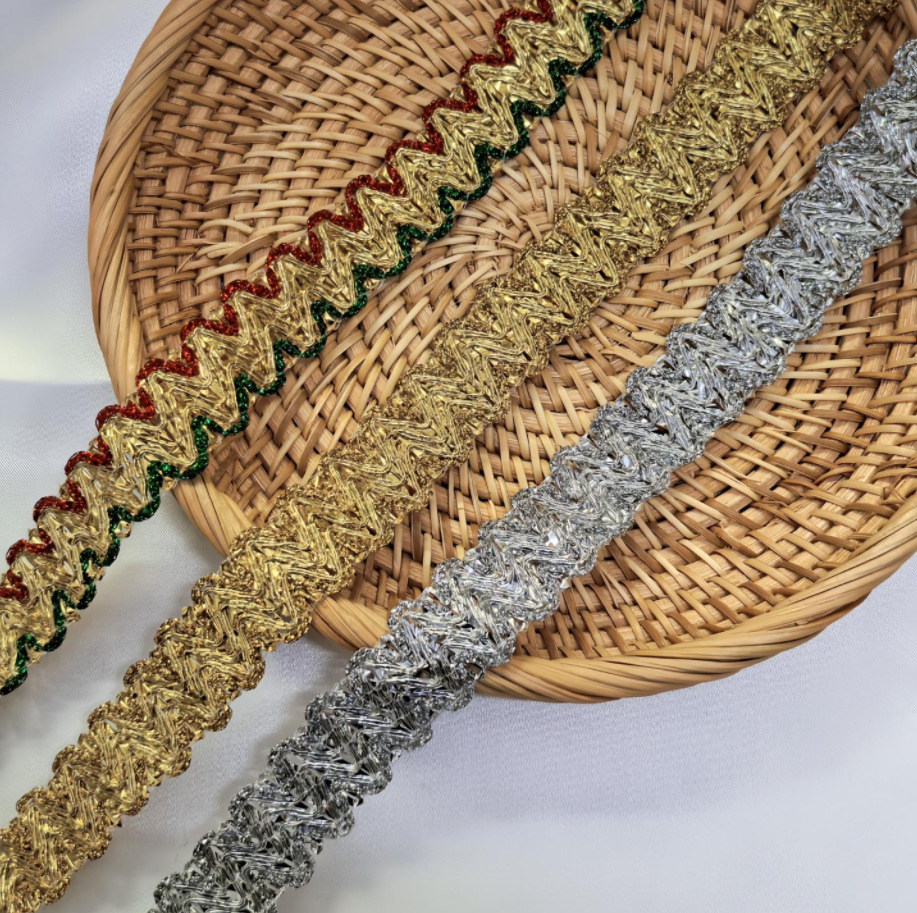 2.5cm Wide Wavy Lace Gold and Silver Lace Clothing Accessories Accessories Gold and Silver Red and Green Curved Wide Lace Handmade