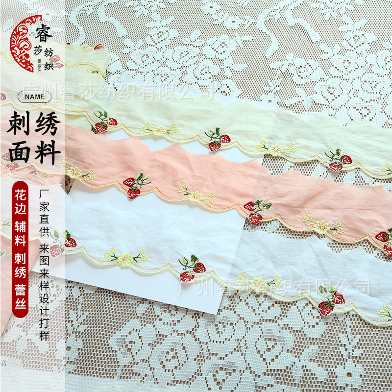 Factory In-Stock Strawberry Embroidered Cotton Lace DIY Handmade Home Decor Children's Clothing Skirt Lace Trim Wide