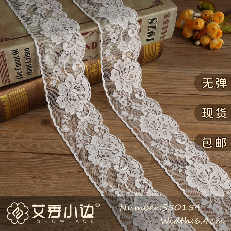 S50154# elastic lace lace 6.4cm women's DIY handmade jewelry dress nylon lace