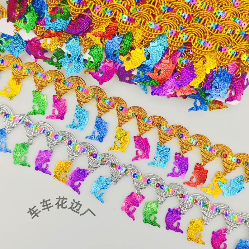 Colorful Thick Thread Pagoda Good Luck Koi Fish Pendant Sequin Lace Handmade DIY Mid-Autumn Fish Material