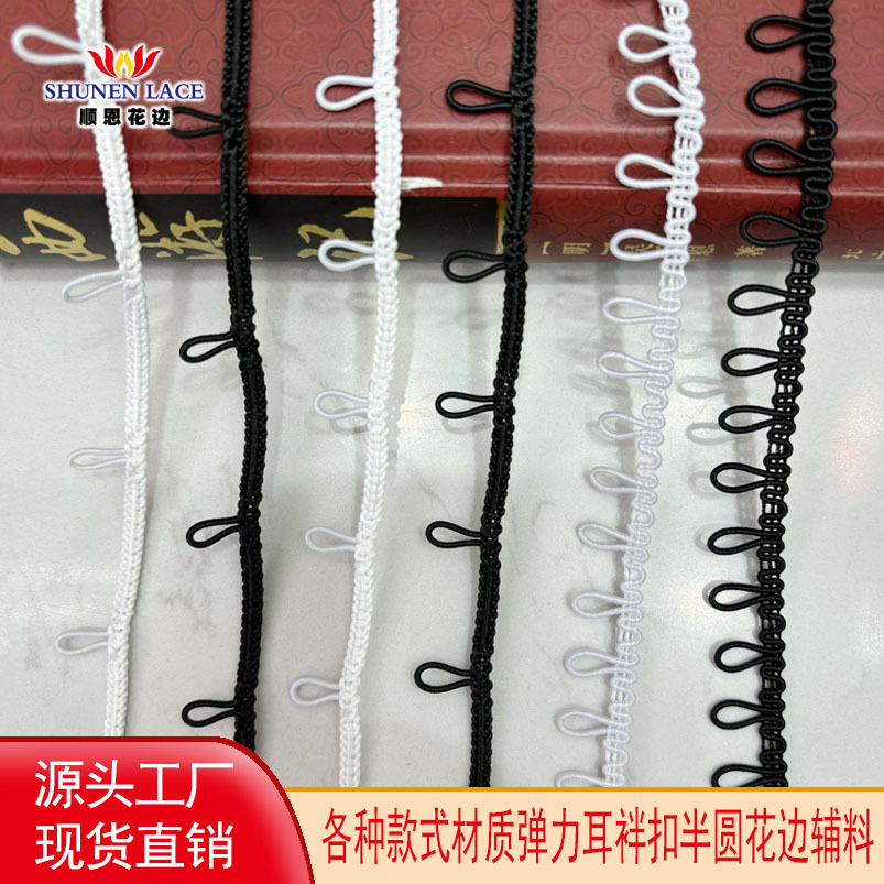 In stock black and white ear elastic band button elastic buckle loop lace detachable coat hat collar buckle clothing accessories