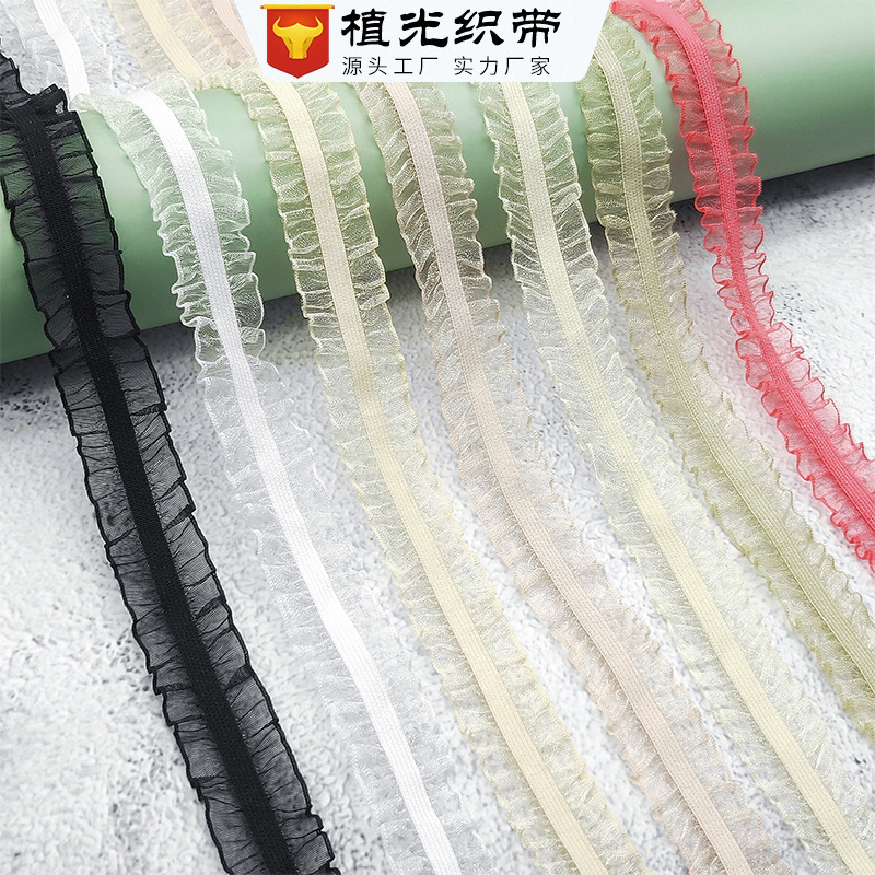 Bilateral elastic belt agaric lace jewelry chiffon pleated elastic two-way lace accessories ruffled webbing