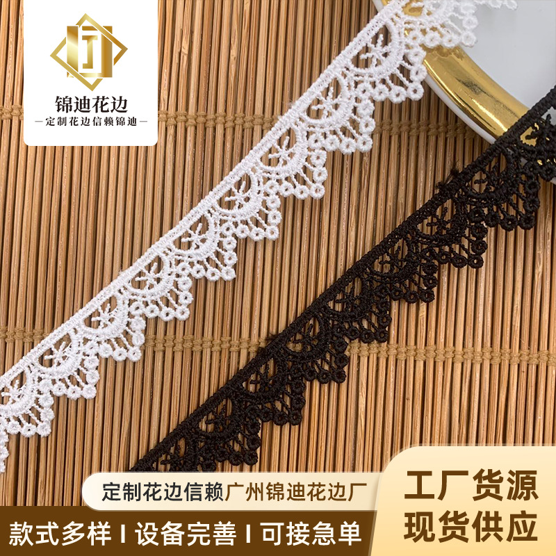 Factory Direct Sales Polyester Black Lace Trim Accessories Single-Sided Wave Small Stripe Computer Embroidery Water-Soluble Embroidery