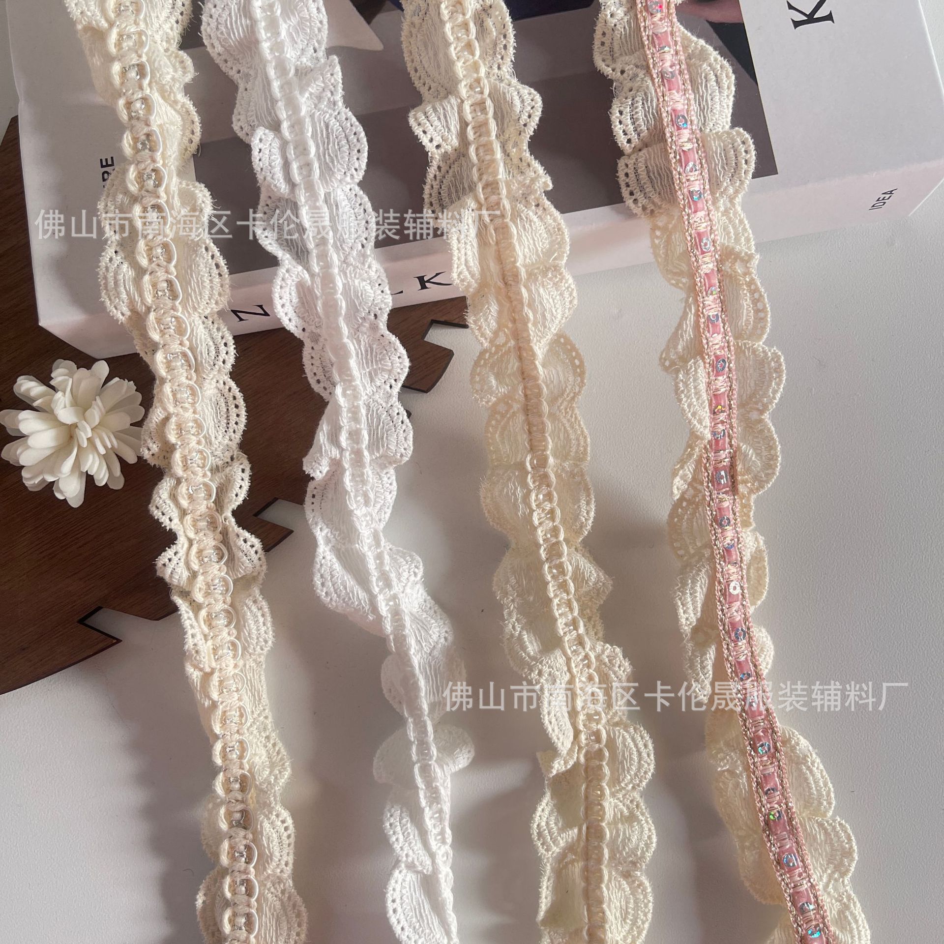 Fold pleated handmade DIY apricot discount White Island satin trim clothing skirt hem lace wholesale